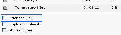 file_list.enableDisplayBigControlPanel | list of keywords | Determines whether the checkbox "Extended view" in the filelist module is shown or hidden. If it is hidden, you can predefine it to be always activated or always deactivated.